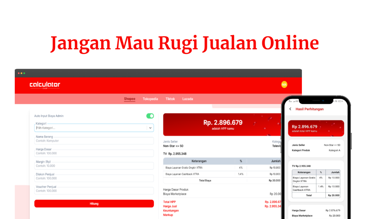 Tak perlu repot menghitung manual, Calculator eShop akan menghitung biaya admin dan layanan marketplace secara instan dan akurat. Hemat waktu dan hindari kesalahan perhitungan!
